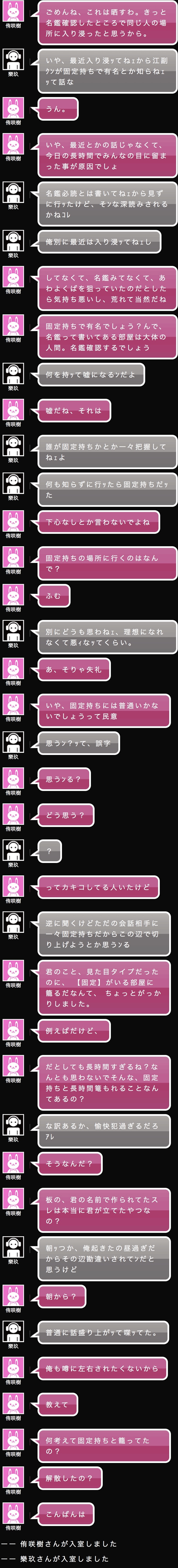 こうなるから固定持ちと関わりたくない。固定持ちはノックなし対一来ないで〜